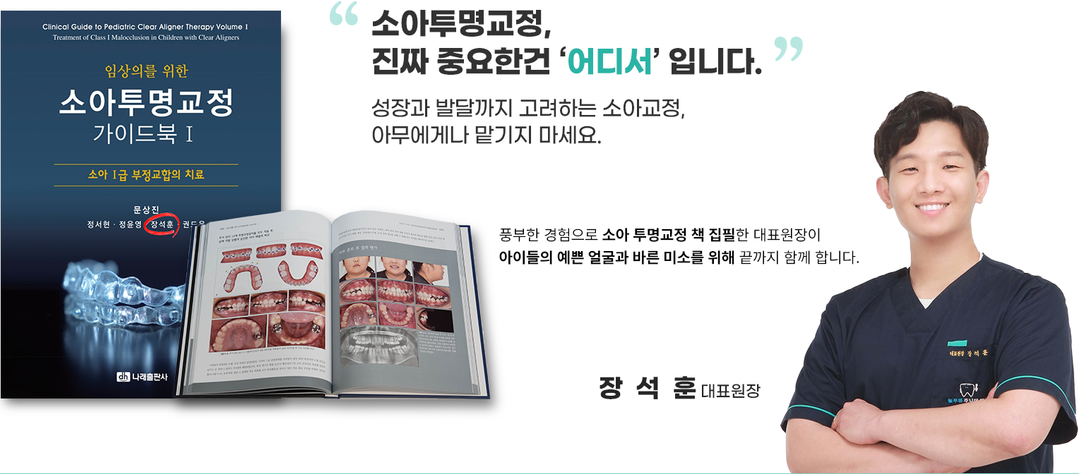 풍부한 경험으로 소아 투명교정 책 집필한 대표원장이 아이들의 예쁜얼굴과 바른 미소를 위해 끝까지 함께 합니다.